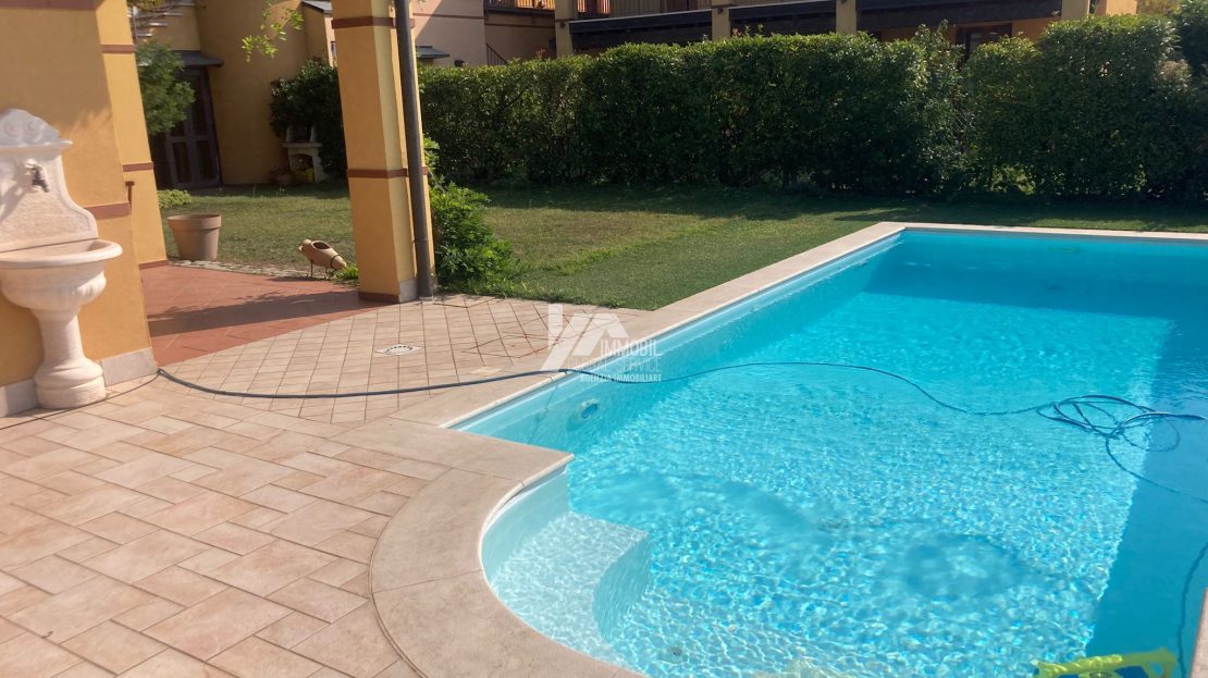 giardino esclusivo con spaziosa loggia vivibile, piscina con splendida vista panoramica.
